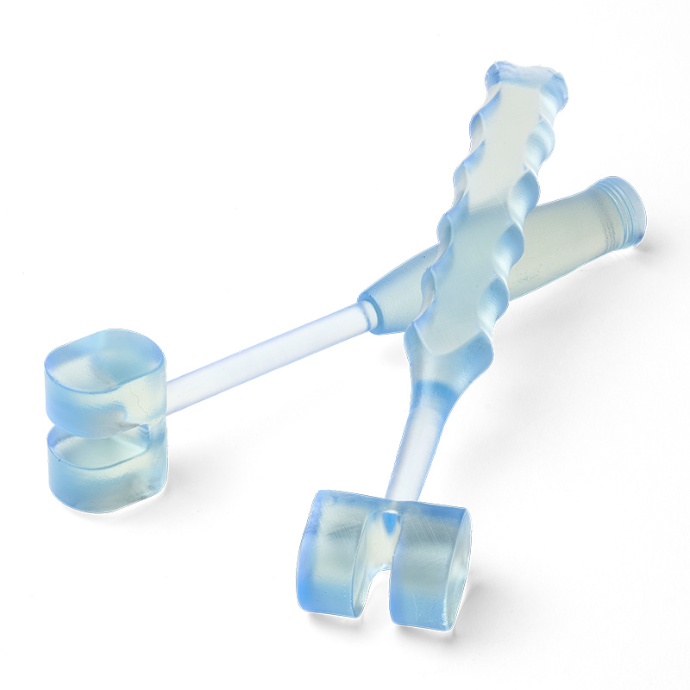 Het is mogelijk om met deze resin kleine, nauwkeurige flexibele en waterdichte onderdelen met interne kanalen te 3D-printen en siliconen spuitgegoten onderdelen te vervangen.
